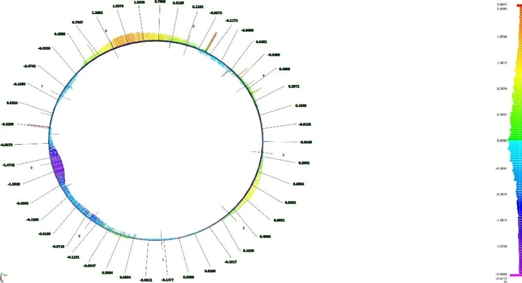 Cross-section analysis showing structural deviations and areas requiring detailed evaluation.